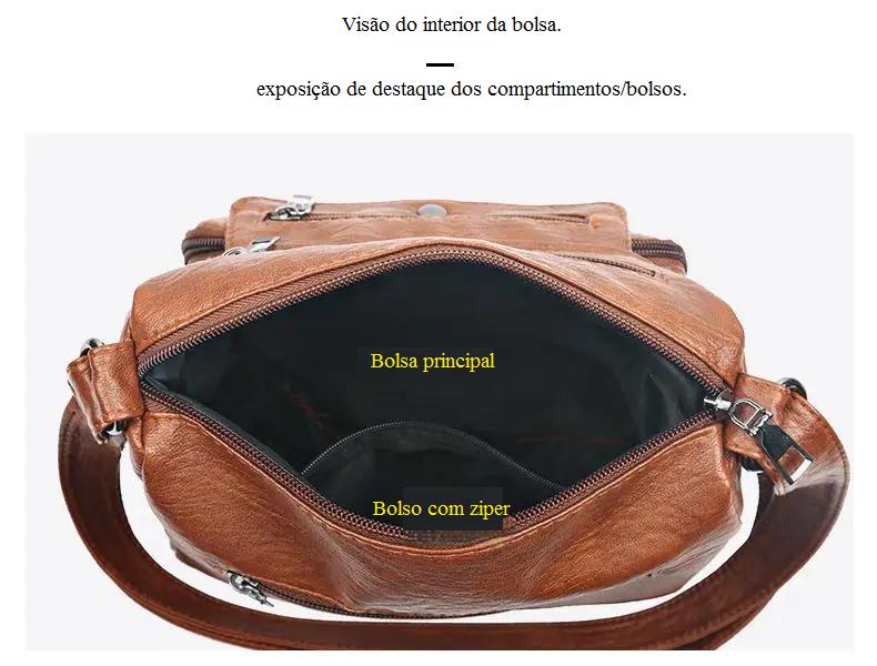 • Grande Capacidade: A bolsa possui um interior espaçoso que pode acomodar todos os seus itens essenciais, tornando-a perfeita para o uso diário.