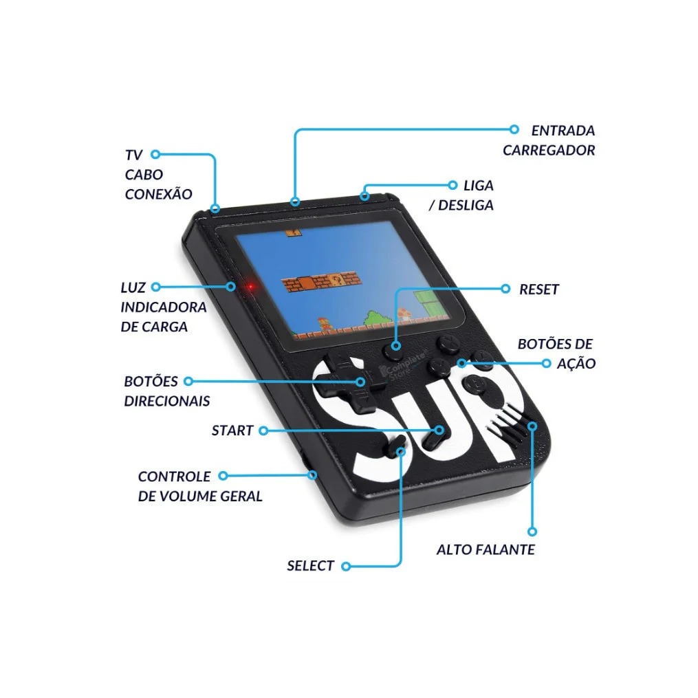 Abaixo imagens dos itens inclusos com mini game portatil: