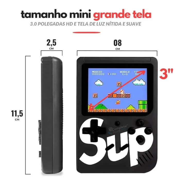 - Dimensões da console: 11,5 x 7,8 x 2 cm